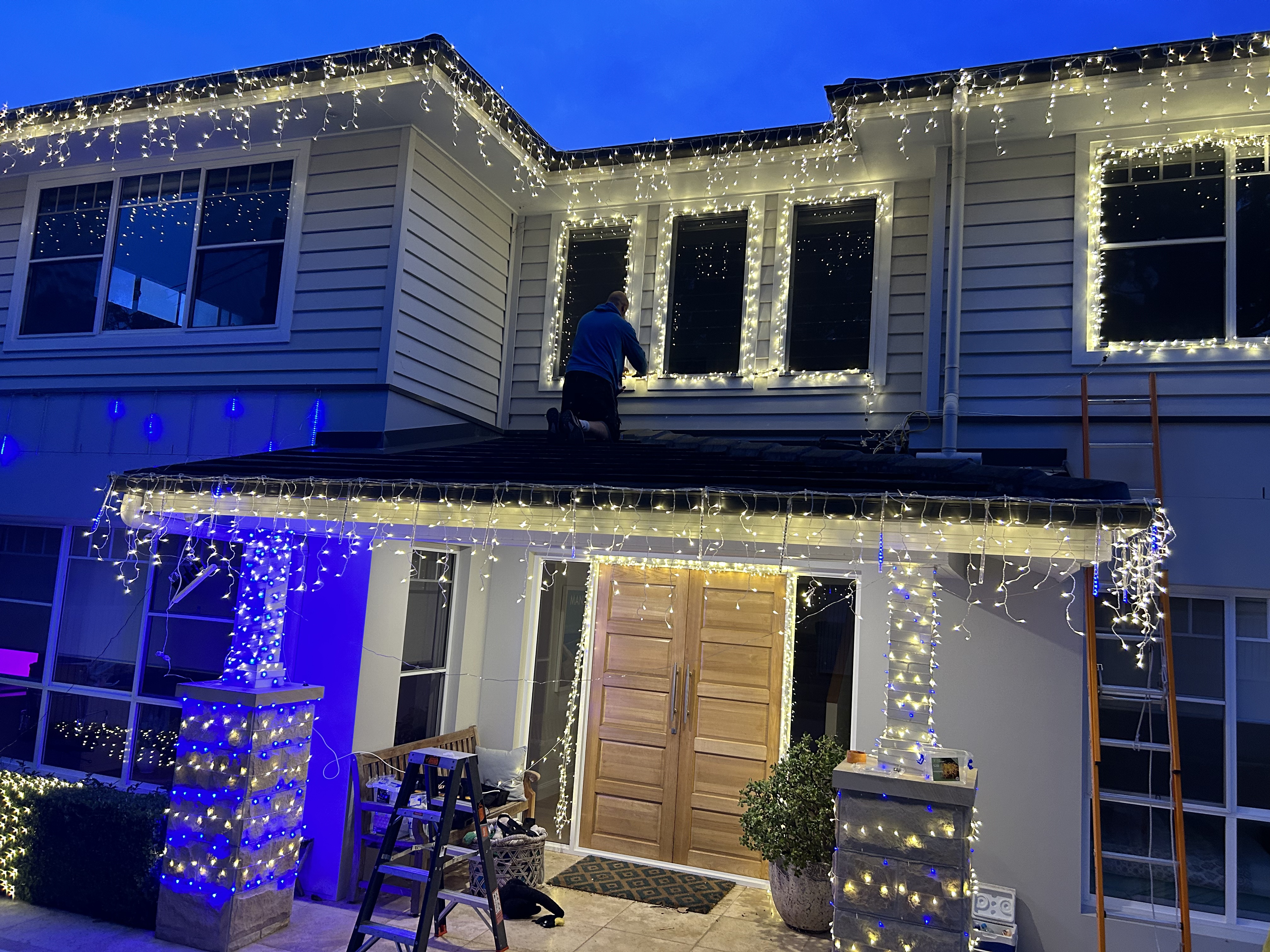 Installing easy access power points or sensors and timers controlled by a master switch that controls your Christmas lighting display can be achieved. Sometimes an inside switch controlling all your outside Christmas power points, ready to plug in your Christmas lights is a great idea and makes next years Christmas light install a lot easier.